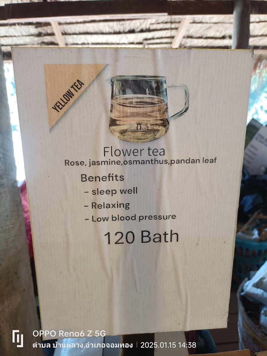 The menu at Pati non โรงคั่วกาแฟบ้านแม่กลางหลวง features a selection of beverages and light meals centered around locally grown coffee and tea. Visitors can choose from various coffee preparations including espresso and specialty Patinon Coffee, alongside unique offerings such as butterfly pea tea. Tasting options for both coffee and tea are available to explore different flavors and brewing styles.